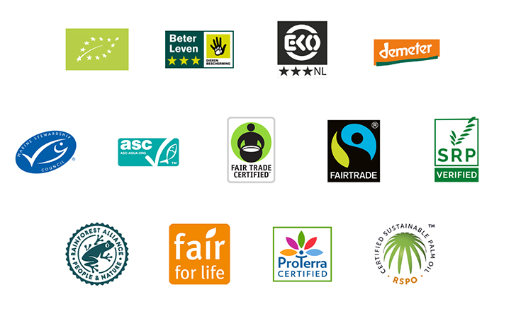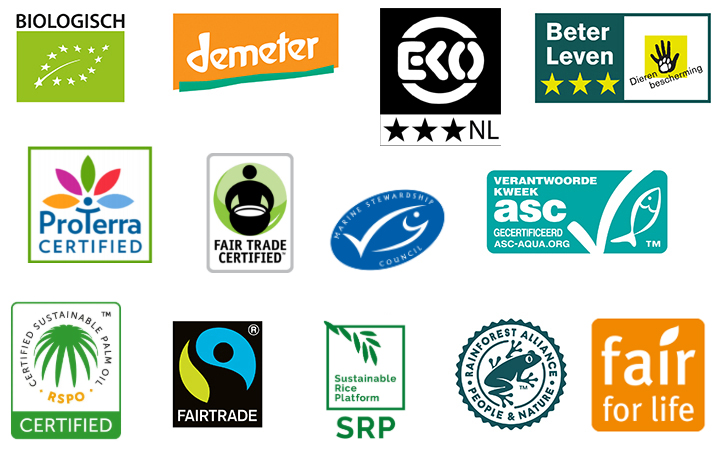 - Rainforest Alliance: tropische producten (zoals fruit, koffie, thee en cacao)