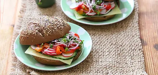 Deze versie van het klassiek broodje is rijk belegd met groente.