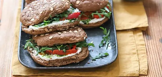 Recept van het Voedingscentrum: Broodje met gegrilde paprika en pestospread
