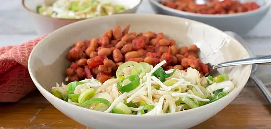 Recept van het Voedingscentrum: Bruine bonen in tomatensaus met pittige kool