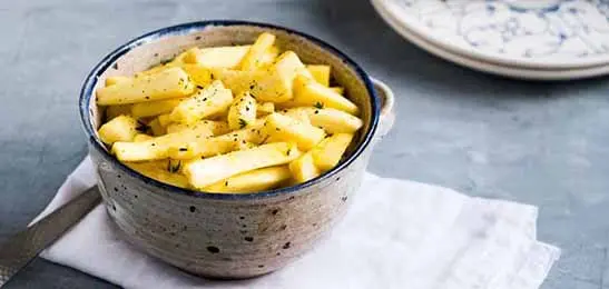 Voeg wat water toe en smoor de pastinaak in 5-8 minuten gaar.