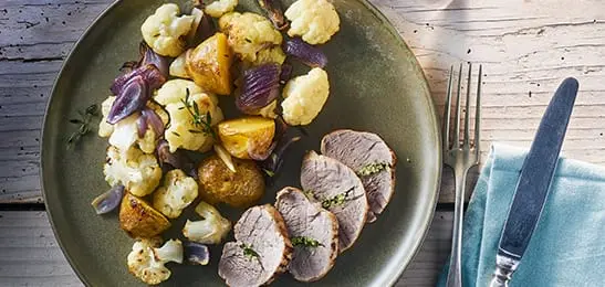 Recept van het Voedingscentrum: Gevuld varkenshaasje met ovengroente