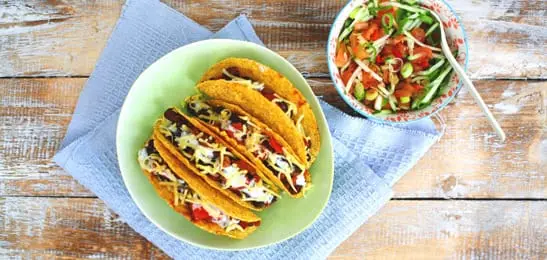Bereid de tacoschelpen volgens de aanwijzingen op de verpakking.
