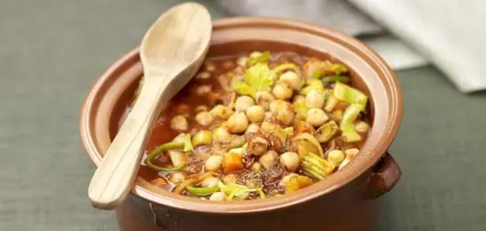 Spoel de kikkererwten af en meng ze door de groente. Warm het goed door.