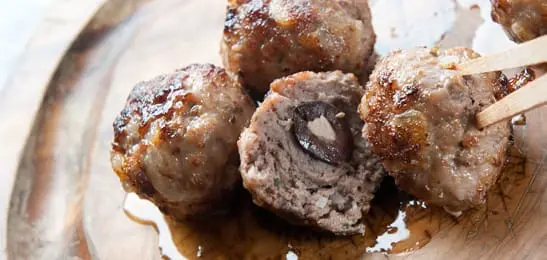 Vorm er 2 balletjes per persoon van en vouw het gehakt om de olijven.