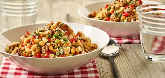 Recept van het Voedingscentrum: Macaroni met noten en geroosterde paprikasaus