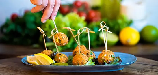 - Serveer de balletjes in de slabladen en besprenkel met citroensap.