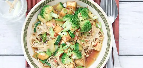 Deze variatie op een Thaise noedelsoep kun je zo pittig maken als je zelf wilt.