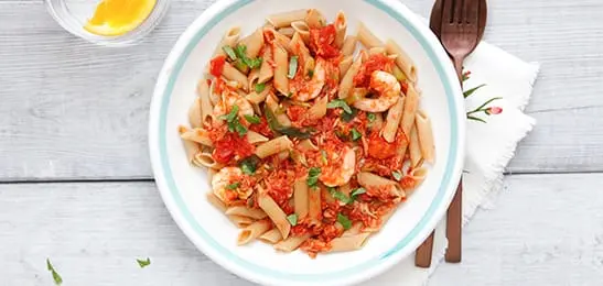 Recept van het Voedingscentrum: Pasta met tonijn, garnalen en tomatensaus