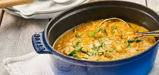 Verwarm de olie in een soeppan en verwarm hierin het komijnzaad tot het gaat geuren.