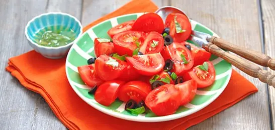 Maak een dressing van het citroensap, een beetje water, de olie, basilicum en wat peper.