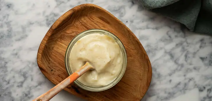 Voeg voor een romigere textuur ook een eidooier toe bij de laatste stap en laat de saus al kloppend binden. Zorg ervoor dat de saus niet gaat koken, dan gaat het schiften.