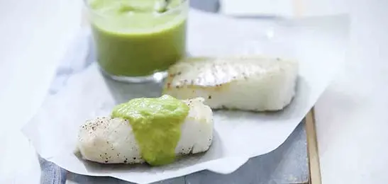 - Verdeel de preis-kerriesaus over de vis.